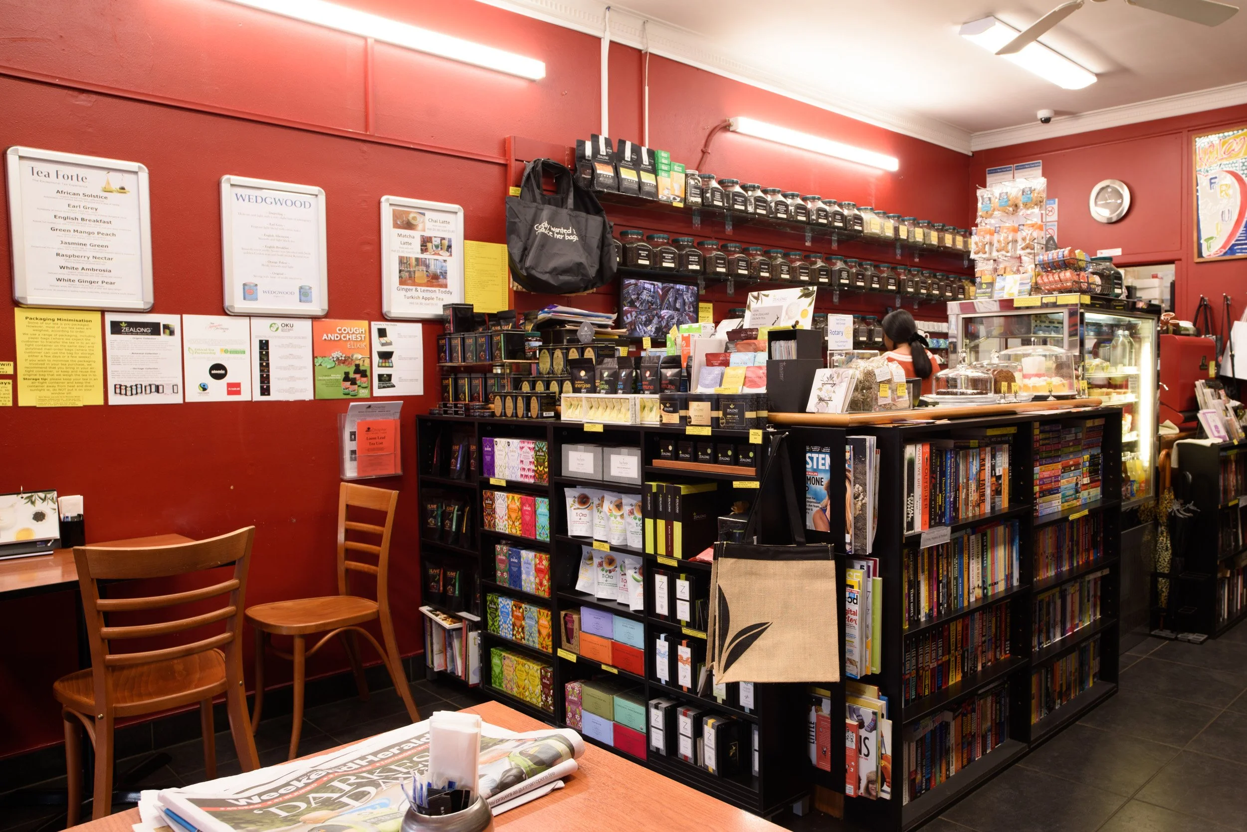 The Chapter Book and Tea Shop is the location of Auckland's original Mt Eden tea shop which started in 1995. The current business owner Frances Loo bought the business in 2005 and, since then, has expanded the tea range which now features a wide range of tea brands, loose leaf teas (black, green, oolong, white, flavoured, herbal, fruit, organic and decaffeinated), tea sachets, tea bags, tea accessories and tea gifts.